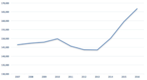 Malgré un petit creux en 2012/2013 plus lié à la manière de comptabiliser les juniors qu’autre chose, la croissance en 10 ans est très nette avec une hausse d’environ 13% des effectifs juniors ou 21 mille joueurs supplémentaires.